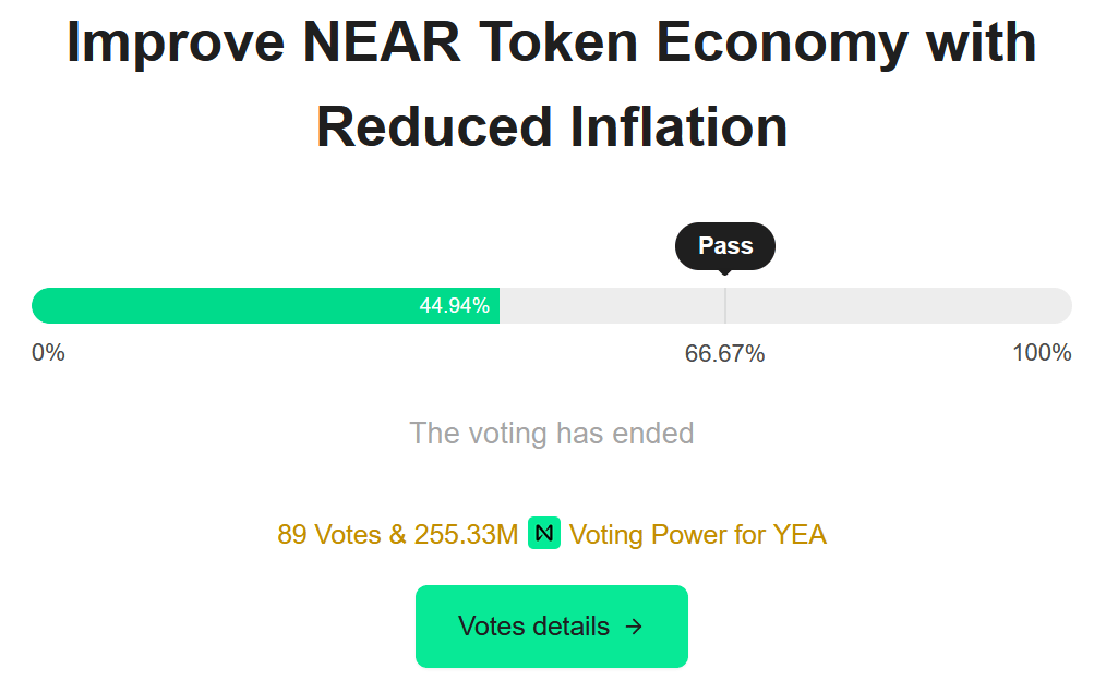 That discussion finally culminated in a vote that concluded earlier this week. But though the vote won a simple majority, it failed to clear the 66.67% approval threshold, leaving it technically unsuccessful under NEAR’s governance rules.